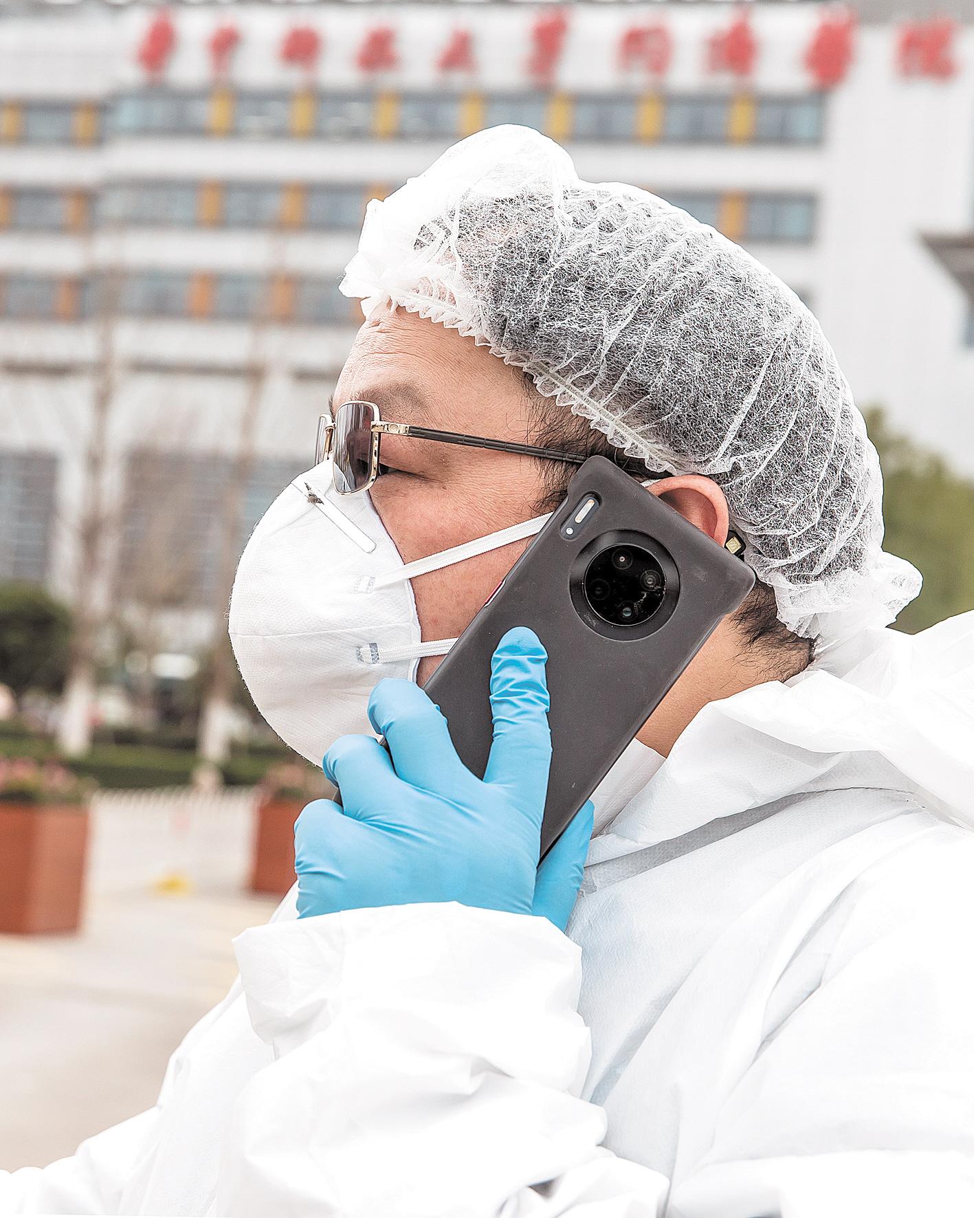 2月11日,志愿者彭文斌不停地忙碌着,电话一个接着一个。
