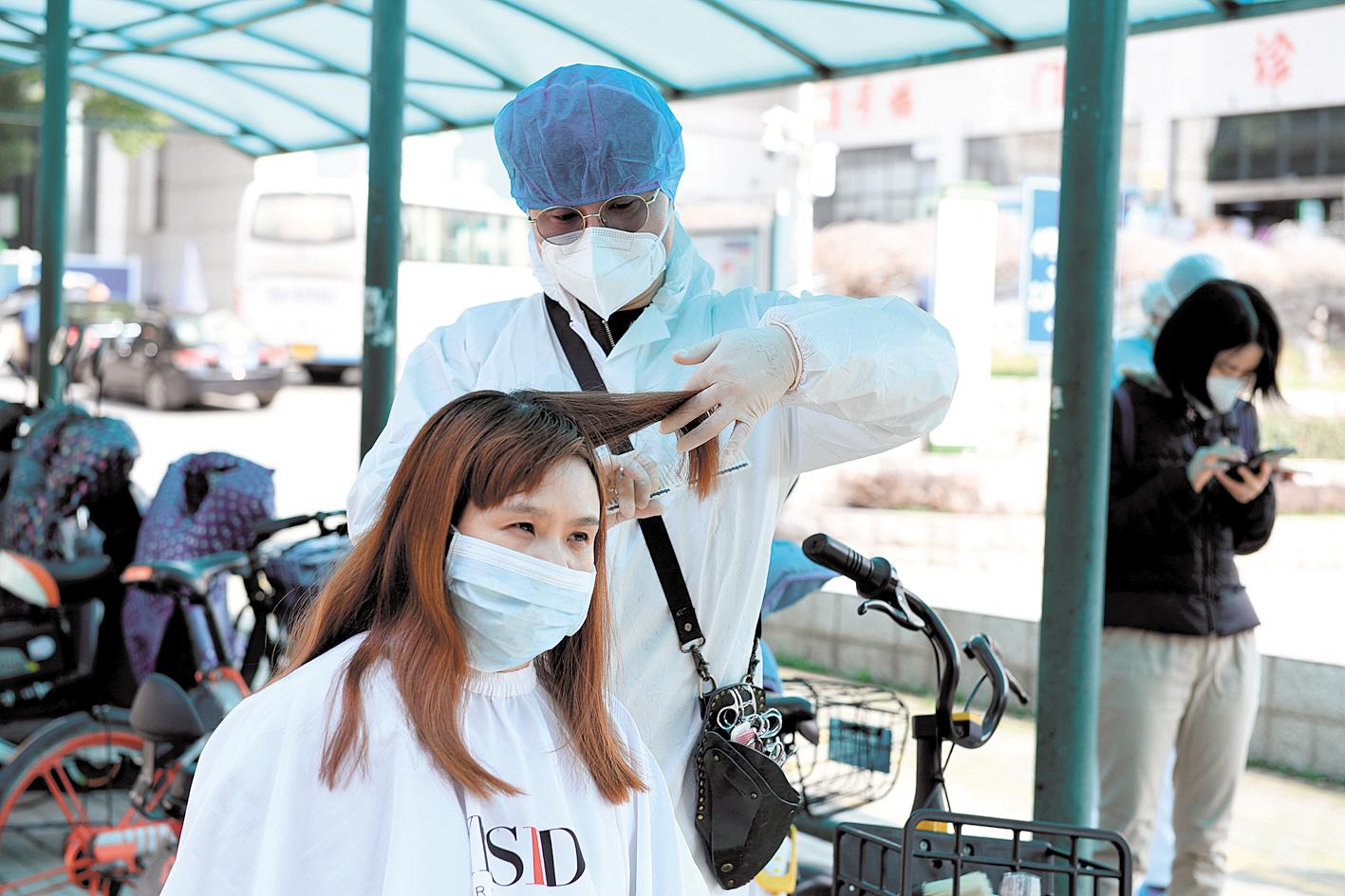 2月23日,椰岛公司发型师给武汉大学中南医院急诊科近百名医务人员义务剪发。