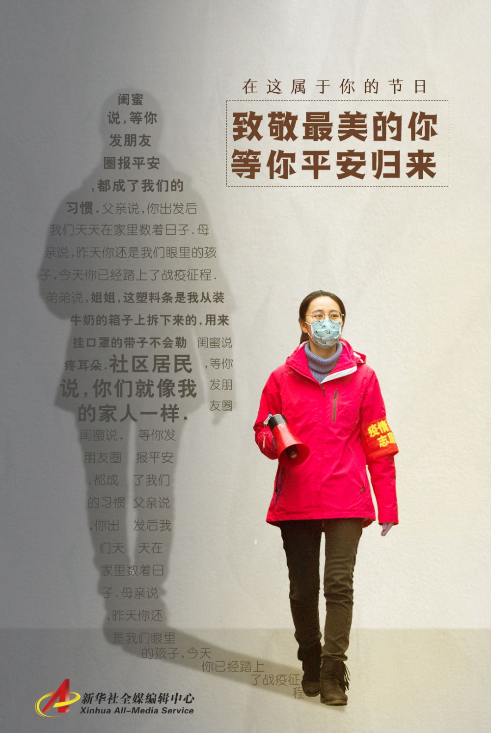 三月,春暖花开, 你的节日如期而至。 在这个因疫情而特殊的妇女节, 致敬最美的你,等你平安归来! 策划:汪金福 监制:徐壮志 设计:曹晓丽 文案:黄小希、王洁 摄影记者:李贺、肖艺九、李一博、陆波岸 |