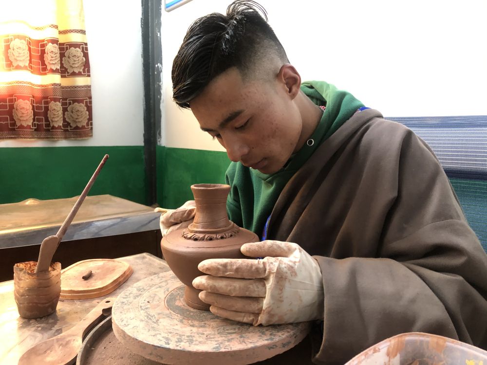 玉树州囊谦县吉曲乡山荣村村民在扶贫产业园内制作黑陶(7月4日摄)。新华社记者 李占轶 摄 兴海县扶贫开发局副局长梁宗孝说,实施易地扶贫搬迁工程后,通过推进“以草定畜、草畜平衡”机制,引导移居牧民发展多元产业,减少放牧对天然草场植被的破坏。“如今,全县草原植被逐步恢复,草场生态环境明显改善。” 青海玉树藏族自治州曲麻莱县组建了65个以自然村为单元的藏羊养殖合作社,流转草场568万亩,投资2300万元建成配套的饲草料种植基地和芫根加工厂。 生态建设与脱贫攻坚并进,绿水青山变成金山银山。曲麻莱县曾经过度放牧的草场,得以休养生息。生态畜牧业成为牧区主导产业,实现了生态保护和精准脱贫双赢。 “好产业”孕育“好日子” “我们村有做黑陶的传统,现在村里成立了制陶企业,做黑陶成为不少家庭的主要收入来源。”玉树州囊谦县吉曲乡山荣村古陶器传承工程中心员工才角仁增说。 囊谦黑陶历史悠久,山荣村被称作“黑陶之乡”。黑陶原材料与制作工具都从当地取材,许多村民学手艺“靠山吃山”。然而山荣村地处偏远,黑陶销售、运输不便,生产难以形成规模,脱贫困难重重。 “自从搬到县里的扶贫产业园后,借助政策扶持、平台推介宣传,黑陶产品的运输、销售问题迎刃而解。”才角仁增介绍。 产业发展起来,脱贫才有根基。在澜沧江畔的囊谦县,政府引导支持12家特色企业入驻扶贫产业园。当地农牧民传承藏族传统手工技艺,生产藏式黑陶、泥塑面具、传统毡帽等特色产品,销往国内外,带领大批藏族群众踏上致富路。 位于黄河源头的青海省果洛藏族自治州玛多县,平均海拔超过4500米,自然条件较差。眼下,这片高原草甸上,玛多4.4兆瓦光伏扶贫联村电站十分显眼。 绵延铺开的光伏板闪耀着幽蓝光泽,收获着高原阳光的“馈赠”:这座电站年发电收入540万元,惠及玛多县11个贫困村的621户1774名贫困人口,实现户均年增收5200元以上。 玛多县副县长孙庆生说,光伏扶贫电站是带给贫困群众“好日子”的暖心工程,也是扶贫产业健康发展的“造血”工程。据介绍,截至6月底,青海39个县市区建成了总容量73.36万千瓦的光伏扶贫电站,惠及当地1622个贫困村。(完) |