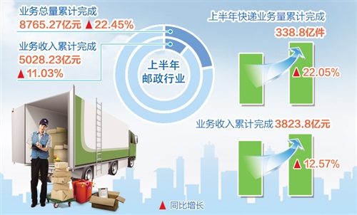 上半年邮政快递业逆势上扬 业务收入超5000亿元