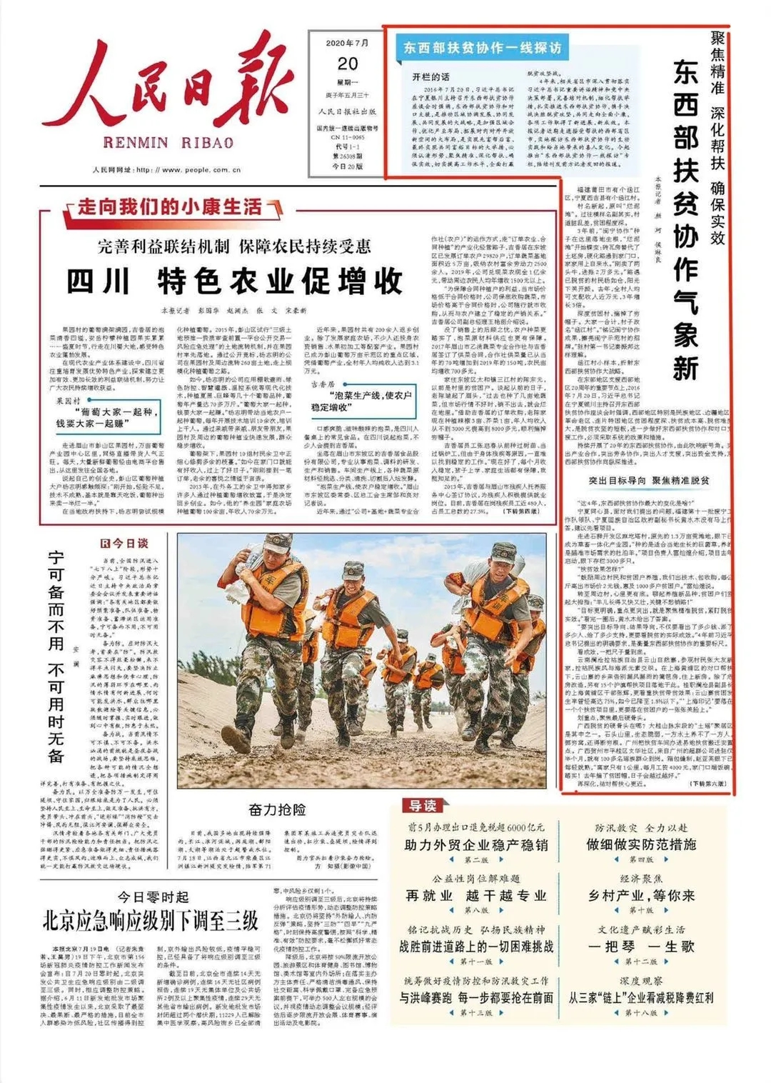 2020-07-20 11:58:48 来源:7月20日人民日报 责任编辑:陈玮 作者:颜珂 侯琳良7月20日人民日报头版刊登报道《东西部扶贫协作气象新》,点赞闽宁协作有实效。