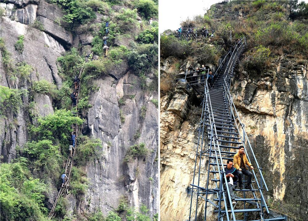 拼版照片:左图为通往四川凉山彝族自治州昭觉县阿土列尔村的简易藤梯(2016年5月14日摄);右图为改建后的钢梯(2017年12月5日摄)。新华社发(阿克鸠射 摄) “现在‘悬崖村’村民的生活越来越好。”帕查有格说,“但是,脱贫攻坚这场仗还没打完,我还得继续坚守。” 帕查有格是四川5.9万名驻村帮扶干部中的一员。作为全国扶贫任务最重的省份之一,四川省始终把脱贫攻坚作为最大的政治任务、最大的民生工程、最大的发展机遇,集结各方力量,调动各方资源,下足“绣花”功夫,向全面消除绝对贫困发起最强总攻。 打硬仗,要配备最能打仗的人。为集中力量攻克位列“三区三州”的凉山州贫困“堡垒”,2018年,四川对凉山州11个深度贫困县组建11支专门工作队,在全省选派5700余名干部常驻开展综合帮扶,力度之大前所未有。 扶贫一线的党员干部付出的,除了心血、汗水,甚至还有生命。“你走出穷山沟,又来到穷山沟,百姓的冷暖忧愁,总放在心头。你把村民当亲人,付出了所有……”一名网友的留言,道出对党员干部马伍萨的深情怀念。 出生在大凉山的马伍萨,生前是四川甘孜藏族自治州农机推广服务中心的一名彝族干部。在甘孜州甘孜县夏拉卡村担任驻村第一书记期间,他因过度劳累突发疾病,医治无效,于2019年5月13日不幸去世,年仅38岁。 据四川省扶贫开发局统计,截至目前,全省在脱贫攻坚中因公献出生命的人员已达77名。在和平年代,这些英雄们以生命赴使命,在没有硝烟的“战贫战场”将为民初心淬炼成钢。 奋斗:宁愿苦干 不愿苦熬 秦巴山深处,重峦叠嶂,沟壑纵横。 身高仅1.5米的四川巴中市南江县小田村村民秦发章,走路一瘸一拐,但他黝黑的脸上写满了不屈与自豪。