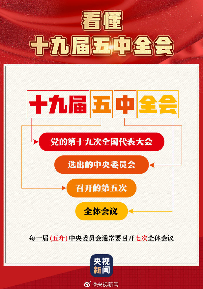 中国共产党第十九届中央委员会第五次全体会议,于10月26日至29日在北京举行。主要议程是,中共中央政治局向中央委员会报告工作,研究关于制定国民经济和社会发展第十四个五年规划和二〇三五年远景目标的建议。今天,一组图带你了解十九届五中全会↓↓
