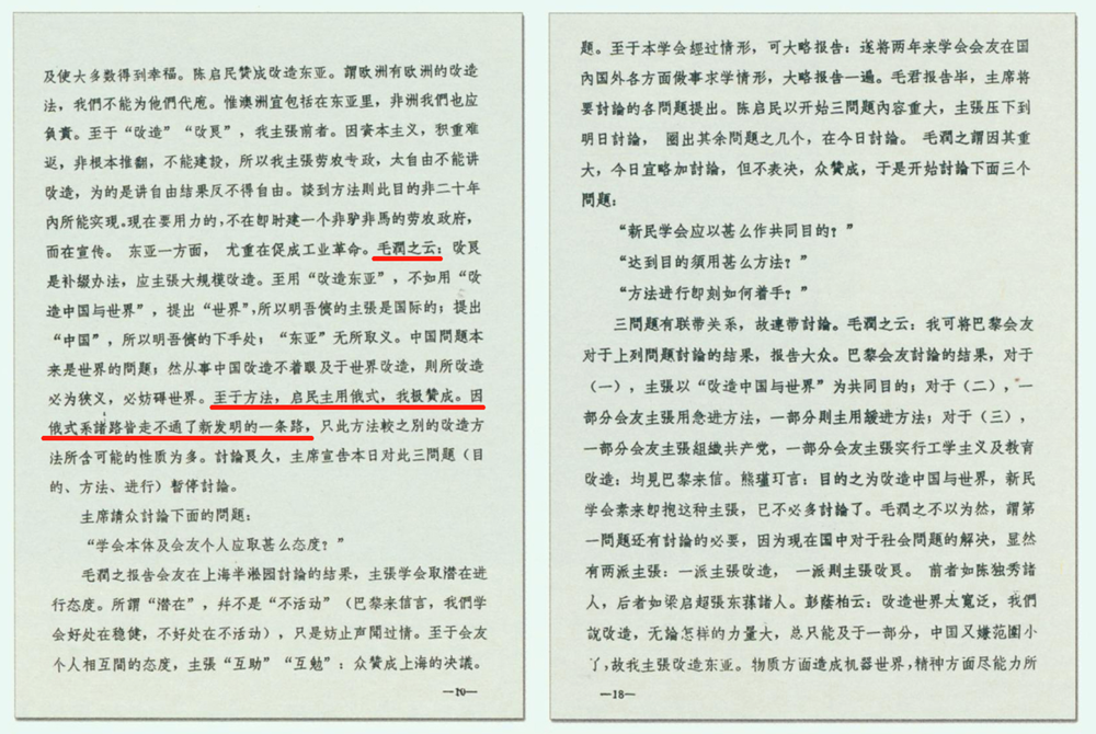 1918年4月,毛泽东、蔡和森、萧子升、何叔衡等13人在蔡和森家成立新民学会。学会以“革新学术,砥砺品行,改良人心风俗”为宗旨。要求会员不虚伪、不懒惰、不浪费、不赌博、不狎妓。从1918年创立到1921年中国共产党建立,新民学会活动了三年多时间,前后大约有80多名会员。这些人中的大部分后来都走上了革命道路。这是新民学会成立大会旧址。 毛泽东在发言中说:我赞成用俄国式的革命道路,这是诸路皆走不通了新发明的一条路。他还比较了社会民主主义、无政府主义等方法,认为“激烈方法的共产主义,即所谓劳农主义,用阶级专政的方法,是可以预计效果的,故最宜采用”。 把这篇发言作为《毛泽东文集》的开篇,是因为它标志着毛泽东选择了马克思列宁主义革命道路。实际上,在一个月前,毛泽东给在法国的新民学会会员蔡和森、萧子升等写了一封长信,信中专门用很大的篇幅讨论了改造中国与世界的方法和目的问题。毛泽东在信中谈到:蔡和森主张用俄国式革命的方法来改造中国,萧子升等不赞同用俄式革命的方法,主张用温和的革命、教育的方法。毛泽东明确表示:深切赞同蔡和森的主张,而不同意萧子升等的主张,“我觉得用教育的方法是不行的。我看俄国式的革命,是无可如何的山穷水尽诸路皆走不通了的一个变计,并不是有更好的方法弃而不采,单要采这个恐怖的方法。”毛泽东的这封信,后来作为开篇收入《毛泽东书信选集》。 “山穷水尽诸路皆走不通”,毛泽东用形象的十个字,概括了近代以来仁人志士探索民族复兴之路苦涩的心路历程。自1840年以来,救国寻路,民族复兴,就成为近代中国的基本政治主题。 19世纪下半个世纪,中国人已经做过了多种尝试:只搬用一些洋枪洋炮和近代工业技术的洋务运动救不了中国,上层士大夫曾希望依靠光绪皇帝的支持来进行改革的戊戌维新运动又失败了,下层民众自发掀起的义和团式的旧式反抗运动也失败了,孙中山领导的资产阶级革命也没能改变中国的命运……