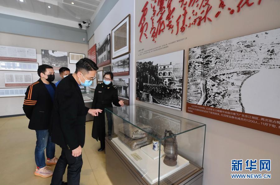 1月25日,讲解员廖晓婕(右一)在古田会议纪念馆向参观者介绍旧棉絮的故事。新华社记者林善传摄 通过打造红色旅游,吴地引进公司开发建设“红军小镇”,成为古田红色培训及红色旅游业的重要拓展项目,仅去年就有2.3万多人次来此体验。 古田镇镇长华娟说,去年国庆、中秋期间,近10万游客“打卡”红古田。去年全年接待游客300多万人次,承接对外培训1062班次9.8万人次,带动旅游综合收入15亿元。 今日的闽西上杭古田,清新的空气沁人心脾,山上的森林郁郁葱葱,潺潺的溪水清澈见底。好生态换来的是新发展。 在古田多年经营特色农场的许国丰说:“古田生态环境好,种出来的蔬菜瓜果品质高、干净无污染,价格平均比一般市场价高出50%。”