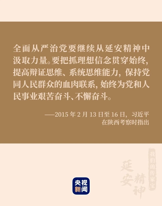 几回回梦里回延安,双手搂定宝塔山。 在位于西北黄土高原的延安,中国共产党人引领民族独立和人民解放事业实现了伟大转折,我们的党走向成熟,我们的军队走向壮大,我们的事业不断从胜利走向新的胜利。在这一伟大征程中孕育了伟大的延安精神。 习近平总书记指出,延安精神培育了一代代中国共产党人,是我们党的宝贵精神财富。 巍巍宝塔山,滚滚延河水。延安是革命圣地,更是革命者的精神家园。