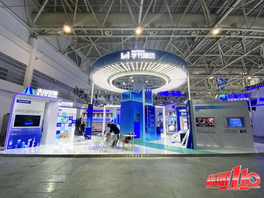 别看它外表呆萌 其实多才多艺 不但会唱歌跳舞 还能做展区“导游” 让我们跟着它 一起开始逛展吧! 5号馆 数字社会 主要展示在发展数字便民服务 优化数字生活方式体验 这些方面的典型成果 字节跳动、腾讯、美图 都在这个馆