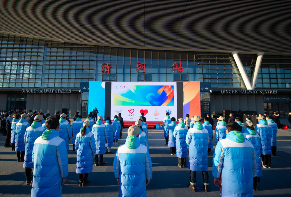 12月6日,北京2022年冬奥会和冬残奥会城市志愿者(北京市)誓师大会在北京的京张高铁清河站举行,50余名城市志愿者代表参加了活动。