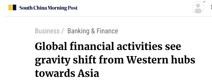 《南华早报》在21日的报道中曾提到,在过去十年中,全球金融活动的重心发生了变化,从传统的北美和欧洲向亚洲转移。大多数迹象表明,这种重新排序将进一步加速。
