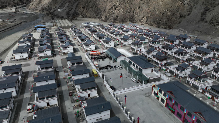 这是2023年2月15日拍摄的西藏隆子县斗玉珞巴民族乡绕让搬迁安置点(无人机照片)。新华社记者 晋美多吉 摄