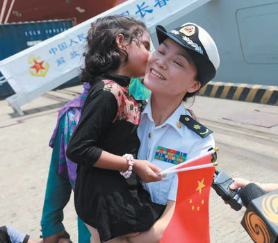 在肯尼亚,“和平方舟”缓缓驶离时,码头上突然出现插着五星红旗的摩托车送行车队,前后足有1公里长;
