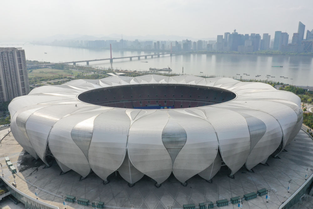 这是2022年3月30日拍摄的杭州奥体中心体育场(无人机照片)。新华社记者 黄宗治 摄