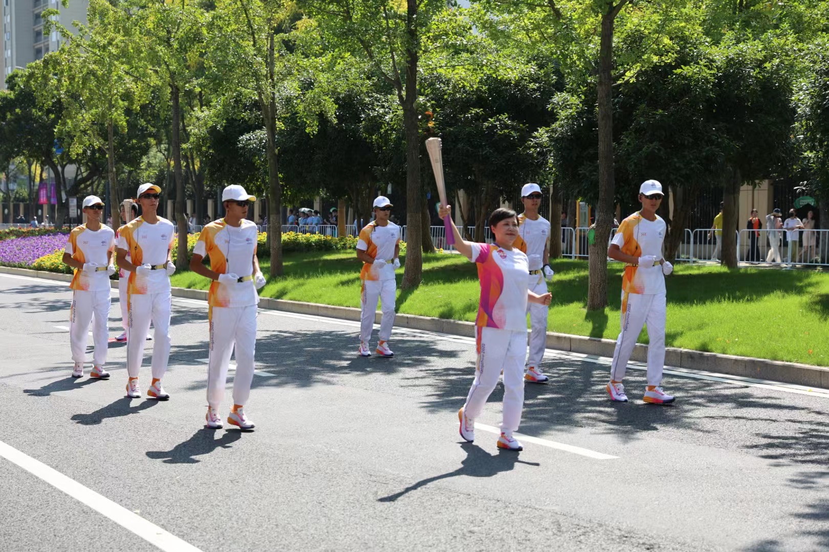 新华社杭州9月9日电(记者朱涵、郑梦雨)“希望我的‘孩子们’能够从火炬传递过程中感受到拼搏进取、团结协作的体育精神。”9日,杭州第19届亚运会火炬传递至湖州,火炬手之一的邓承敏接受采访时对记者说。