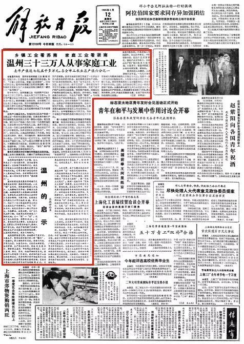 1985年5月12日,《解放日报》在头版头条刊发题为《温州33万人从事家庭工业》的长篇报道 【09:28】 今天的第10棒火炬手是章华妹。 她来自温州市华妹服装辅料有限公司。1980年,19岁的章华妹领到了中国第一份个体工商业营业执照,点燃了个私经济在瓯越大地蓬勃发展的星星之火。 “真的很自豪,很荣幸。”章华妹说,此前忙于生意,很少关注亚运会。这次亚运会在自己家门口开,一定要好好看看。她说,作为火炬手,要传好火炬这一棒,作为温州的民营企业家,也要传好民营经济高质量发展的接力棒。“做生意就像一场赛跑,和体育精神是一样的,都要去努力争取。”唯有奋斗者,才能向着美好的未来,奔跑向前。 【09:25】 此次火炬传递,温州站共有170名火炬手接力传跑,其中温州市本地选拔火炬手110名,涵盖杰出运动员、教练员等体育工作者,温商代表、时代楷模、道德模范、劳动模范、“最美人物”等各领域各类型的先进代表。 火炬手中年龄最小的15岁,年龄最大的72岁,女性代表38名,基层一线代表60名,先进模范人物代表38名,体育工作者代表11名,另外还有少数民族代表、港澳台胞代表和残疾人代表担任火炬手。 【09:20】 火炬传递温州站第2棒火炬手是南存辉。 他是改革开放后第一批成长起来的民营企业家。民营经济是温州发展的根基所在,民营企业家是温州最宝贵的财富,他们秉持“敢为人先、特别能创业创新”精神,创造了举世瞩目的“温州模式”。 【09:18】 杭州第19届亚运会火炬传递温州站第1棒火炬手朱启南跑出第一步,火炬接力正式开始。 朱启南曾夺得奥运会男子10米气步枪项目冠军,是温州历史上第一位奥运冠军。他连续参加了4届奥运会和3届亚运会,是我国射击项目“大满贯”运动员,同时他也参与了本届亚运会竞赛筹备的相关工作。 【09:17】 火种护卫队入场,从火种灯引出火种,点燃杭州亚运会火炬“薪火”。 【09:08】 主持人宣布迎国旗和亚奥理事会会旗,奏唱国歌、亚奥理事会会歌。 【09:00】 此刻,起跑仪式活动正式开始。随着杭州第19届亚运会主题曲《同爱同在》响起,现场气氛一下被点燃。 【08:45】 在松台广场的仪式现场,观众们已经整齐就坐,等待起跑仪式的开始。 【08:36】 今天的第一棒火炬手朱启南,已经在起跑仪式现场就位,并接受采访。朱启南说:“这次回温,看到温州发生了翻天覆地的变化。作为温州人,我不管在哪里,都会祝福家乡越来越好。不管走到哪里,我永远是温州人。” 【08:30】 唐瑾恬,温州市广场路小学四年级学生,今年十岁,早上7时20分在爷爷奶奶的陪同下,她来到火炬传递现场(五马街蝉街)段。在等待的过程中,她拿出画本,描绘心中的“火炬接力”现场。唐瑾恬告诉潮新闻记者:“我喜欢画画,用画画的方式来记录亚运,我觉得很有意义。” 【08:16】 迎接这场全城盛事,在松台广场、五马街、公园路、环城路……火炬传递沿线,挤满了热情呐喊、激情助威的市民。 【08:15】 在瓯江路宪法广场,温州市太极运动协会太极爱好者正在彩排。 【08:10】 在历史文化街区公园路,市民沈筱微和先生一起,带着99岁的母亲潘文英,等待火炬传递。 【08:05】 公园路古戏台旁,来自温州大剧院的观众助威团已经就位,喊出“亚运加油、温州加油”“千年商港、幸福温州”口号。 【07:55】 第20棒火炬手、国家京剧院一级编剧池浚的夫人李娜,带着家人等待这激动人心的一刻。“我和孩子特地从北京赶回来,很荣幸爱人能成为火炬手,孩子们也很自豪。” 【07:50】 在蝉街、五马街等火炬接力点,已有不少市民早早在等候,有市民还特地请假一天,带孩子前来观看火炬接力。 【07:30】 准备出发,火炬手们纷纷合影留念。 【07:30】 本次火炬传递温州站路线以“千年商港·幸福温州”为主题,火炬传递从松台广场出发,沿信河街—蝉街—五马街—公园路—环城东路—安澜亭(古港遗址、江心屿)—瓯江路进行传递,最后到达城市阳台,总长度9.2公里。火炬传递从历史文化街区“古城”穿过,连接瓯江新城,象征着温州从千年繁华走来、向未来之城奋进。 |