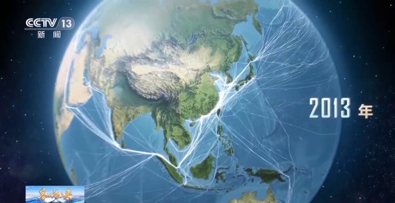 这是2013年时中国与共建“一带一路”国家间的水运航线。