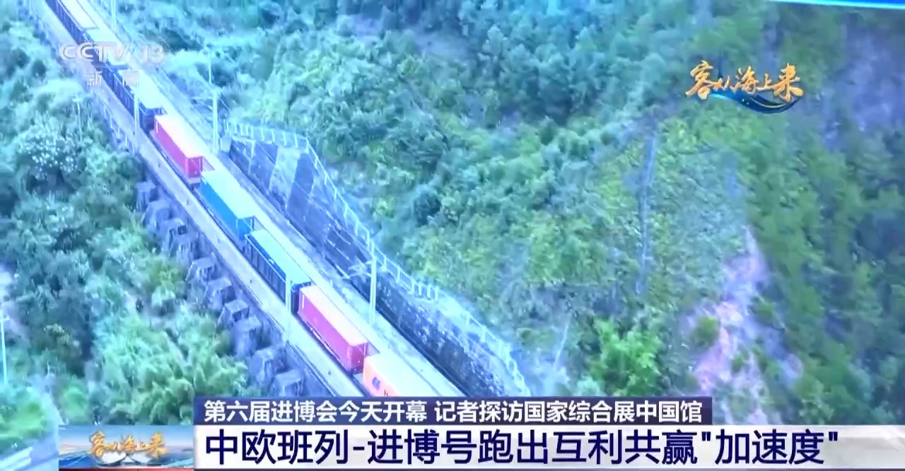 今年是“一带一路”倡议提出十周年,中欧班列是共建“一带一路”的旗舰项目和标志性品牌。这里展示了中欧班列十年来所取得的成就。通过现场这个互动屏幕,观众可以非常清晰了解中欧班列的大事记和班列数据。说到中欧班列与进博会的渊源,自2021年首列“中欧班列-进博号”开行以来,中欧班列为欧洲以及沿线国家企业赴上海参展进博会开辟一条全新的通道。可以说,中欧班列携手进博会,跑出了互利共赢的“加速度”,让中国大市场成为世界大机遇。