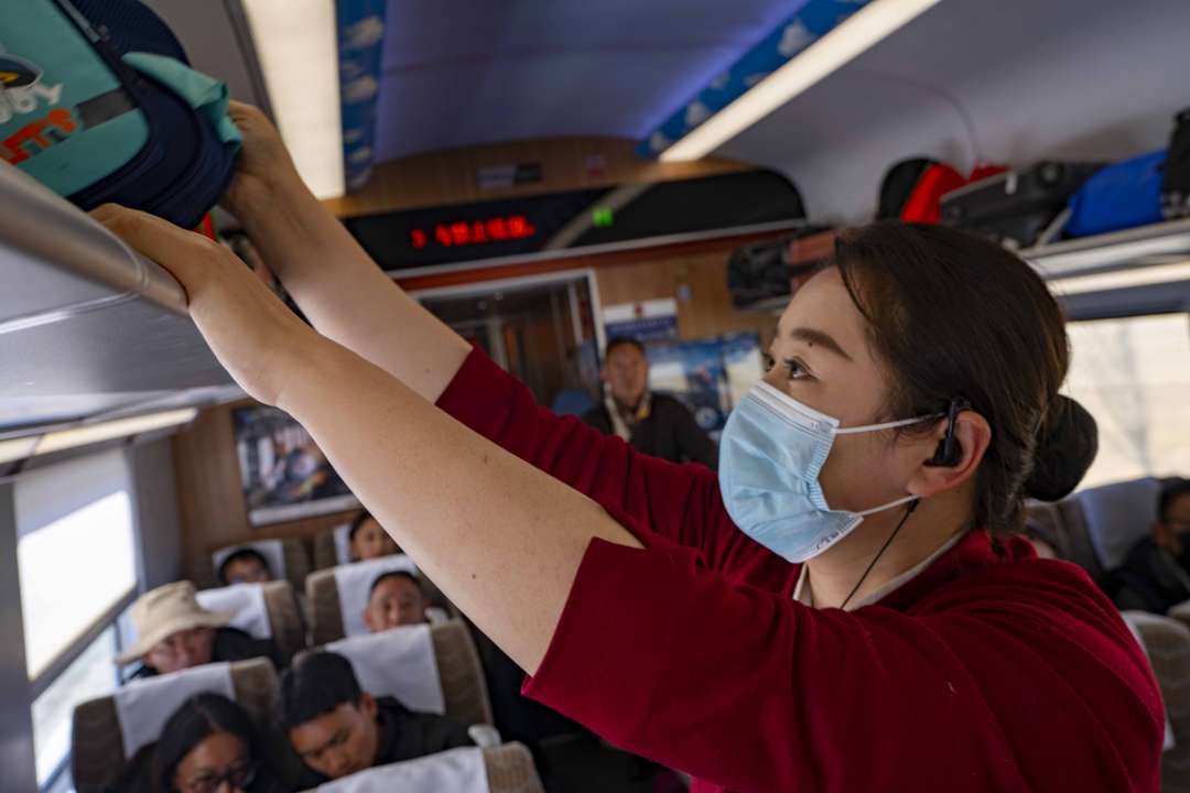 “这两天列车都是超员状态,我负责的车厢是人数最多的车厢。”李丹说着没停下手中的活,“列车员要有耐心,更要细心。”说话间她边检查旅客头顶放着的行李。 随着列车从拉萨站缓缓开出,李丹开始了列车服务——边走边观察边询问,她细心地观察着乘客的情况。“这两天是节后返程高峰,我们车班针对旅客年龄、身份等不同特点,进行了归纳与分析,并根据不同群体的需求,整理沟通要点,收集服务案例,使我们的服务能更好地满足不同旅客的需求。”李丹说。 李丹介绍,早上7点到车站开始,她手里的工作就没停过。车班4名工作人员早早就到了站台接车,开始了出乘前的准备工作。今天值乘的列车共有来回两趟。列车开出前,我们要对整个车厢进行一次详细的检查,消防设备、播音设备、卫生间等,每一处都要检查得认真仔细,确保设备设施状态良好。