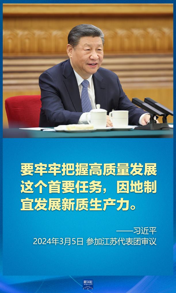 5日下午,习近平在参加他所在的十四届全国人大二次会议江苏代表团审议时强调,因地制宜发展新质生产力。