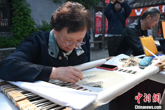 图为国家级非物质文化遗产代表性项目苏绣(扬州刺绣)代表性传承人吴晓平在扬州东关历史文化街区展示技艺。张蔚然 摄