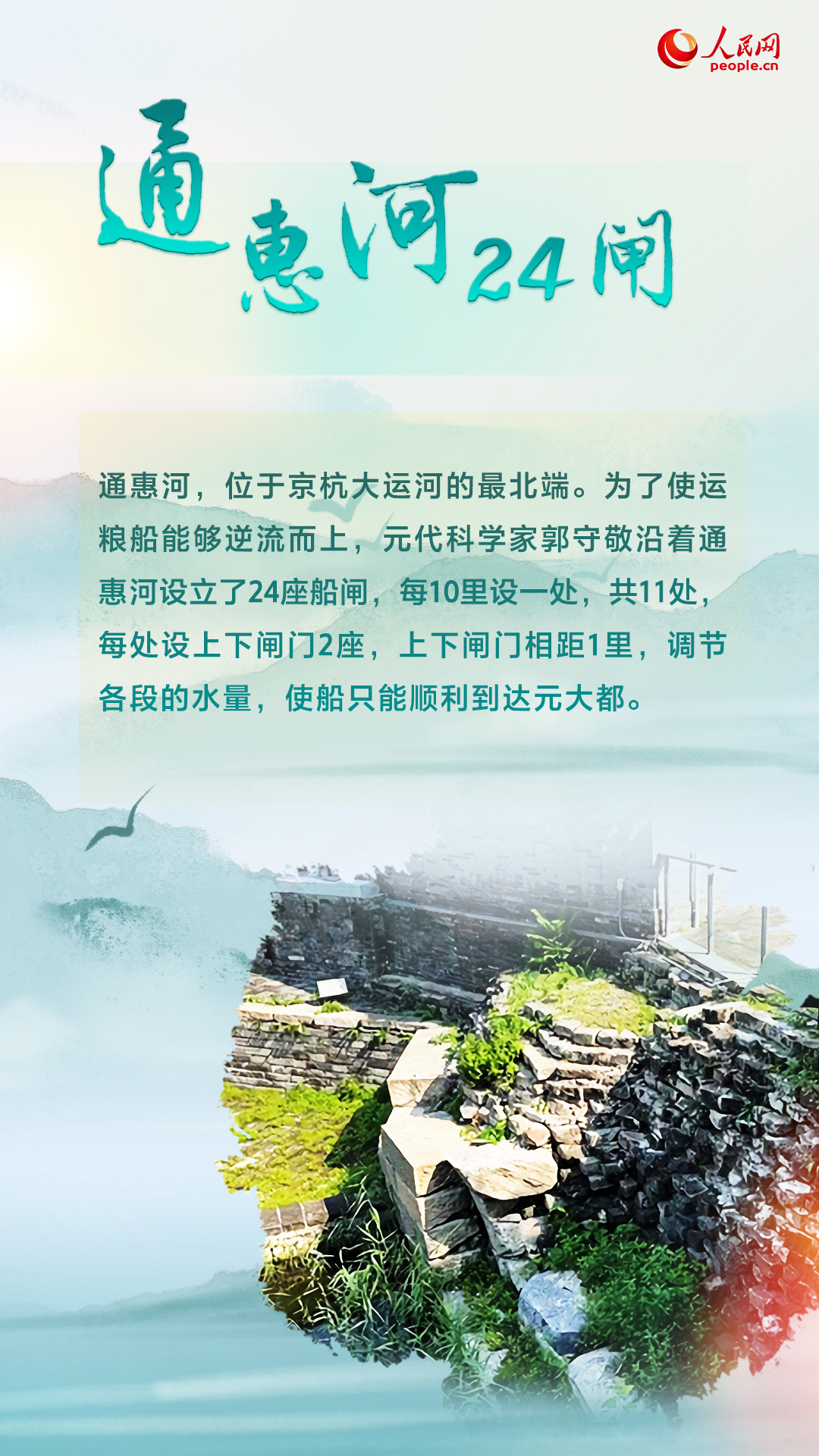 大运河,历史悠久、润泽一方,是世界上开凿最早、规模最大、里程最长的人工河,凝聚着千百年来无数能工巧匠的心血与智慧。今年是中国大运河申遗成功十周年,让我们通过一组海报,品赏大运河建造过程中贯越古今的科技之光。