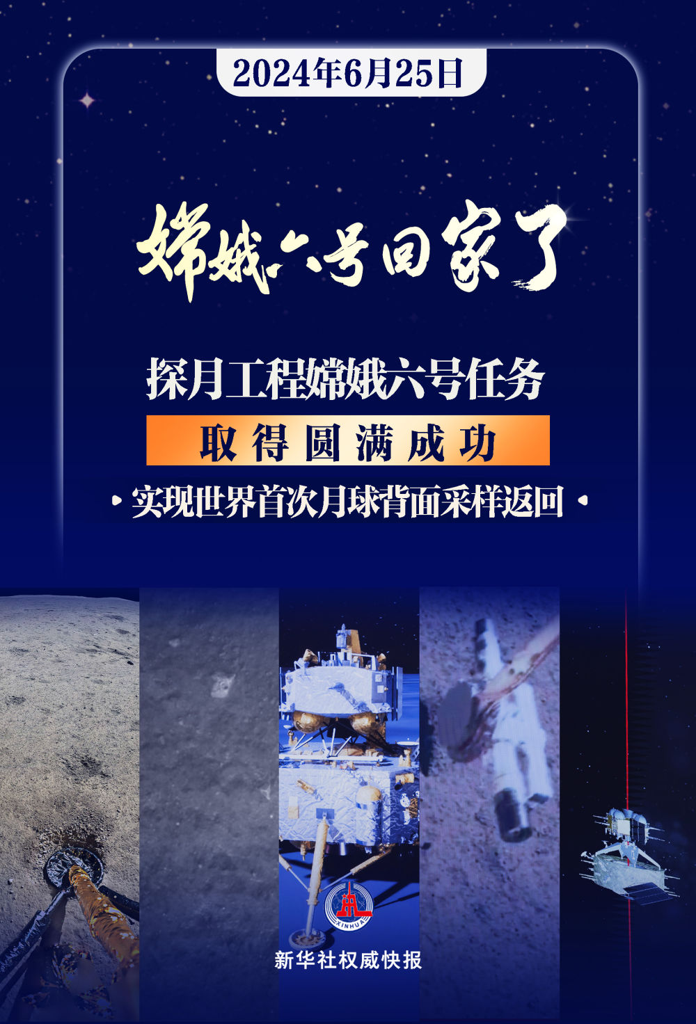 从5月3日成功发射到6月2日精准着陆在月球背面“挖宝”,再到6月25日顺利着陆“回家”,嫦娥六号每一个“动作”环环相扣、顺利进行,这场长达53天的太空探索终获成功!
