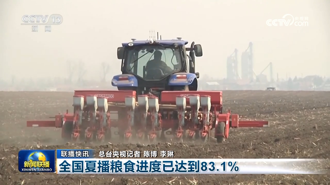 央视网消息:7月6日的《新闻联播》报道了我国多领域建设进展顺利,高质量发展稳步推进。 全国夏播粮食进度已达到83.1%