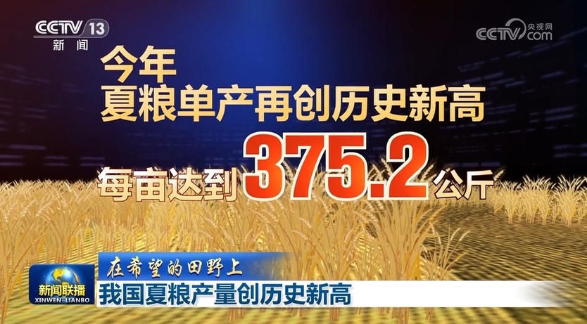 今年,夏粮单产再创历史新高,每亩达到375.2公斤,其中小麦单产达399.1公斤,比2023年增加10公斤。单产实现恢复性增长,这是夏粮产量增加的主要原因。