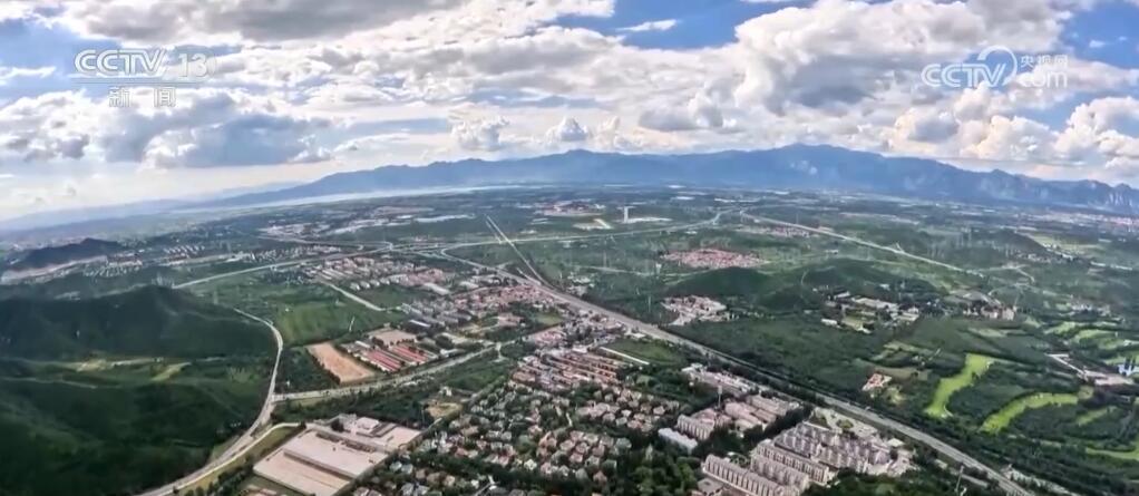 沿着京张高铁上空一路飞行,可以看到不时有列车通过。京张高铁是世界首条智能高铁示范线,首次实现了时速350公里的自动驾驶。2022年北京冬奥会期间,观众可以乘坐京张高铁便捷往返北京和张家口的各个赛场。