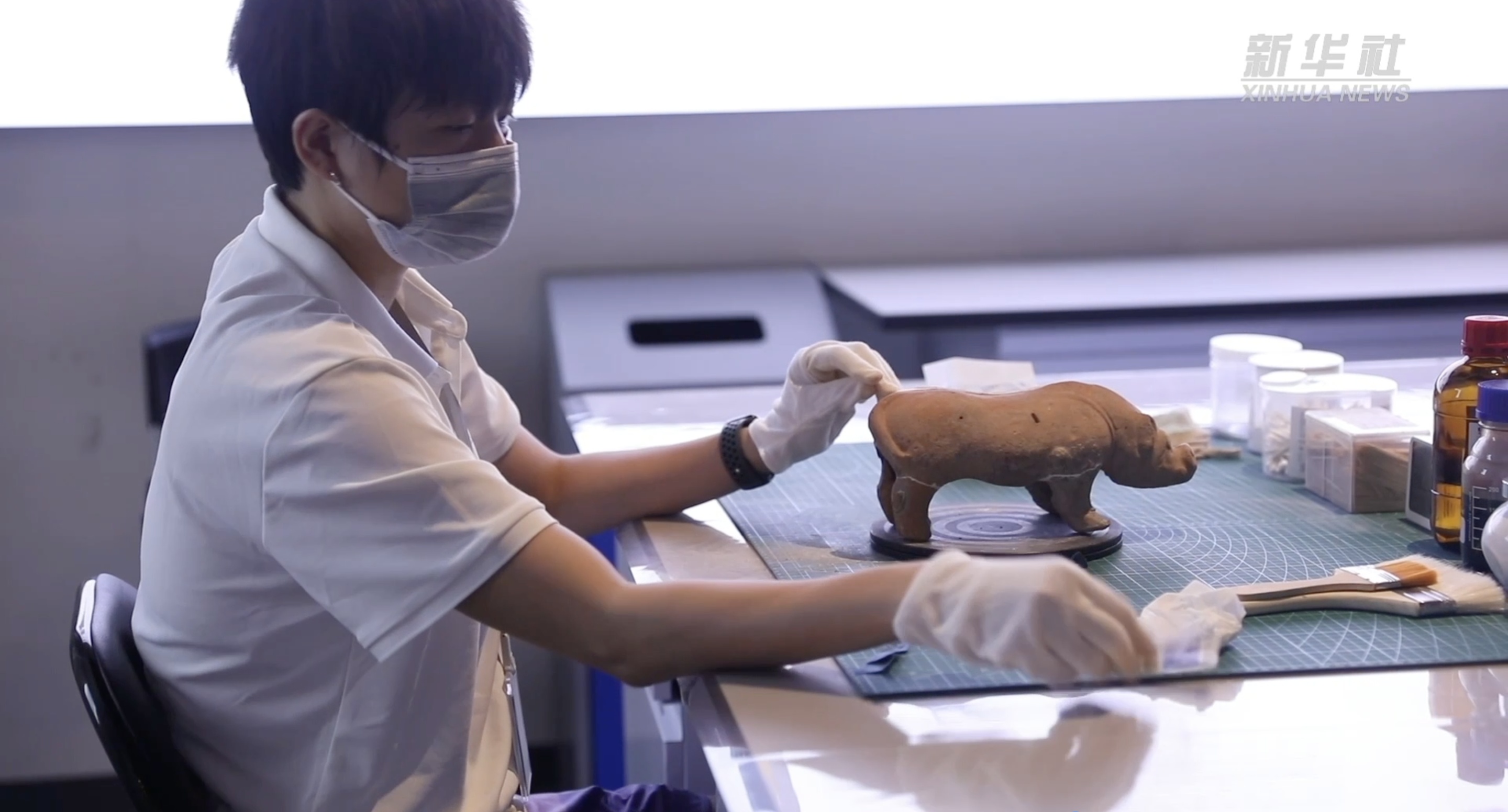 数字化让文物变得更好“看”, 而增强互动性则让文物变得“可触”“可感”。在《三峡出土文物保护利用展》上,博物馆将文物修复室搬进展厅,让观众近距离体验文物修复工作。