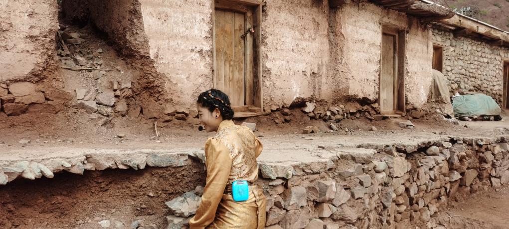 扎西拉姆走向盐仓。新华社记者魏冠宇 摄