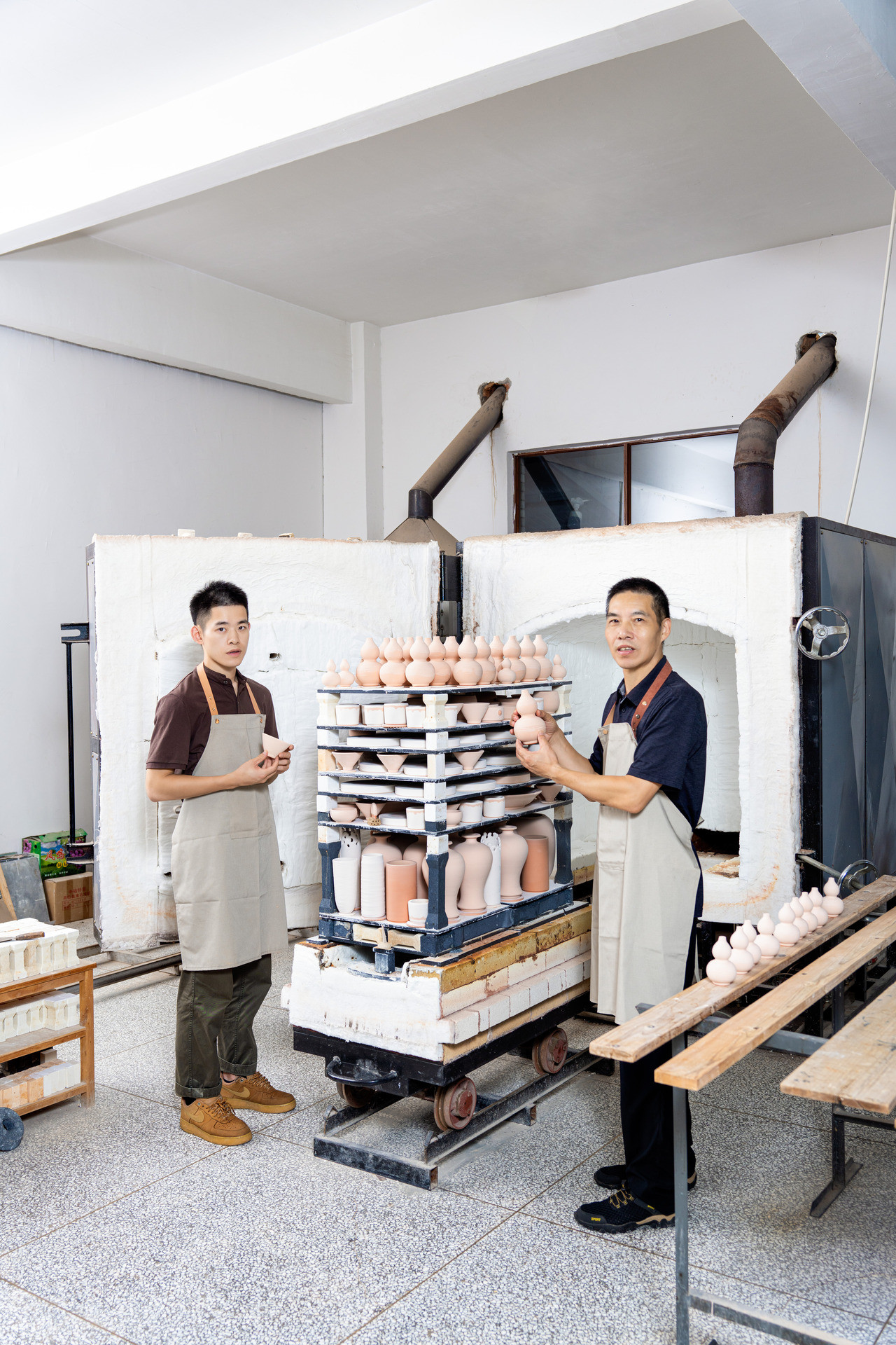 叶晨曦与父亲叶小春。这个龙泉青瓷世家已经传承了七代。图片由受访者提供 自嘉庆年间起,叶家就开始制作青瓷,迄今已有200余年历史。而一片陶瓷凝结的历史,更是如长江水般源远流长。 考古发现,早在万年前,长江流域的湖南道县玉蟾岩、江西万年县仙人洞等石器时代遗址都出土陶器,随后在浙江河姆渡、四川巫山大溪、湖北屈家岭、浙江良渚等文化遗址中,大量陶器重现,串起令人惊叹的华夏文明。 瓷器从陶器脱胎而来,并逐步对欧洲及南洋诸国大量输出,成为中国面向世界的重要文化符号——英文中,“瓷器(china)”正与“中国(China)”同为一词。 历史的片段经水火淬炼后被铭刻,永不褪色。2022年6月,全国第一个古陶瓷基因库——江西景德镇古陶瓷基因库在御窑博物院正式揭牌。2400余套、近万件瓷片标本,大部分出自景德镇当地,时间跨度从晚唐至民国时期。在今人手中,古瓷片的“基因密码”被一一破译:一块碎瓷片标本能提取出的考古信息涵盖造型、纹样、胎釉、款识…… “以今汲古、以古烁今,我们借助当今的科技手段去挖掘古代陶瓷信息,再进行活化应用。”景德镇御窑博物院院长翁彦俊说。譬如,提取瓷片上的花朵纹样数据,让当代设计师运用到创作中,沉睡的艺术就能焕发新颜。 元代,一抹幽蓝色泽的青花瓷,曾引领世人对色彩的想象。 而今,在90后“景漂”张鸿之手中,青花有了另一番面貌:青花瓷上跃动着的人,有古代装扮,也有时新穿着;有东方人,也有西方人;有现实生活,也有志怪神话……是熟悉的水墨韵味,也是颇具现代性的新意设计。 从大学本科开始,张鸿之便来到景德镇研习陶瓷。从科班,到窑口,再到成立个人工作室……十年之间,除了自身成长、设计语言更为纯熟,张鸿之也看着景德镇的陶溪川文创街区如同瓷器淬火,在光与热中一点点蜕变—— 大烟囱高耸,红砖厂房阵列排布,极简个性的艺术展厅营造出工业美学风。周末夜晚,烟火气流动,摊位一眼望不到边。年轻人热衷来夜市“碰瓷儿”,并将这里的收获带回日常:花纹古朴的咖啡杯,造型奇特的雪茄缸……