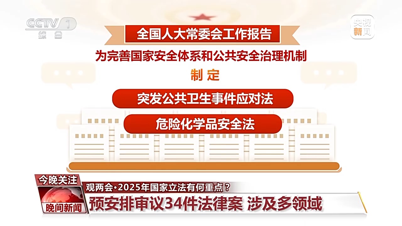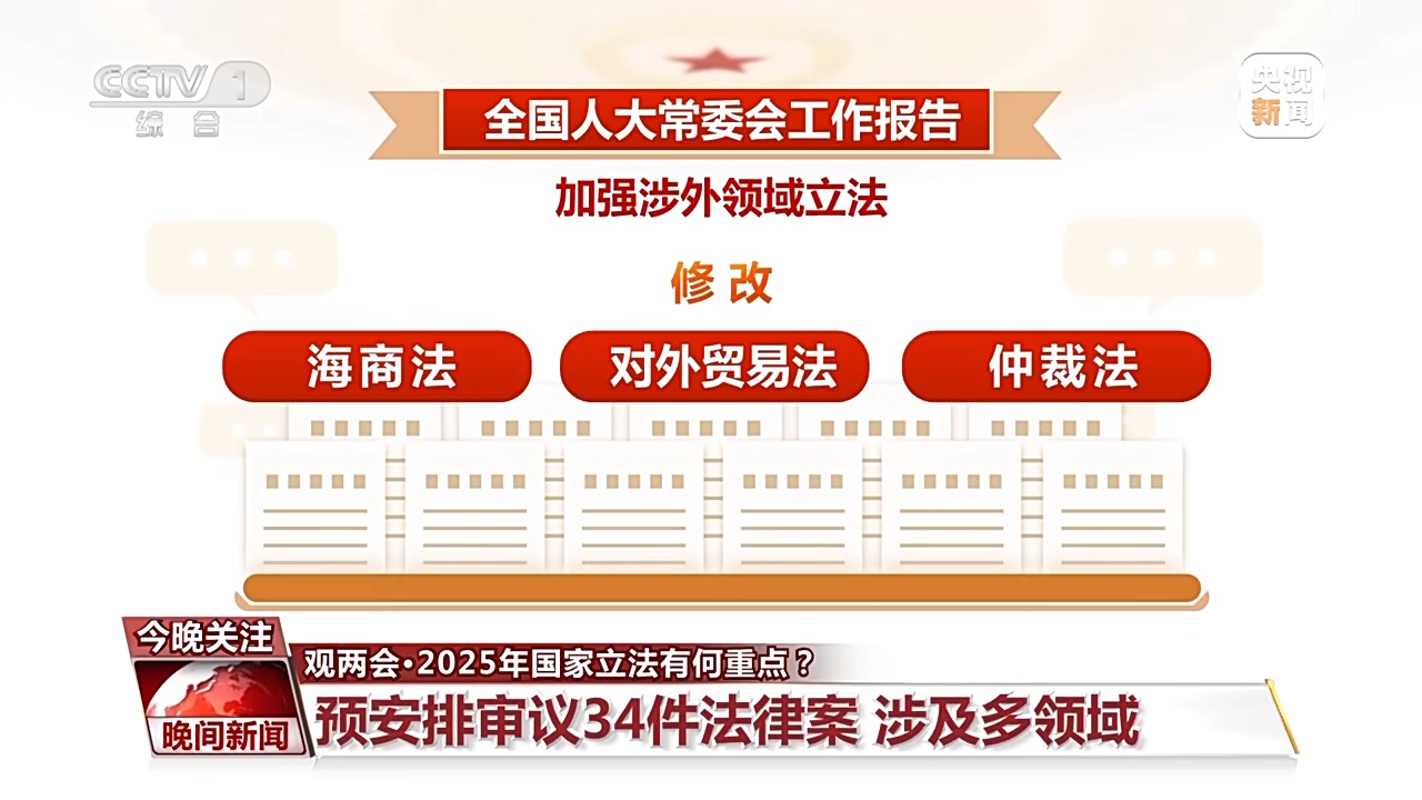 全国人大常委会工作报告显示,2025年预安排审议34件法律案。