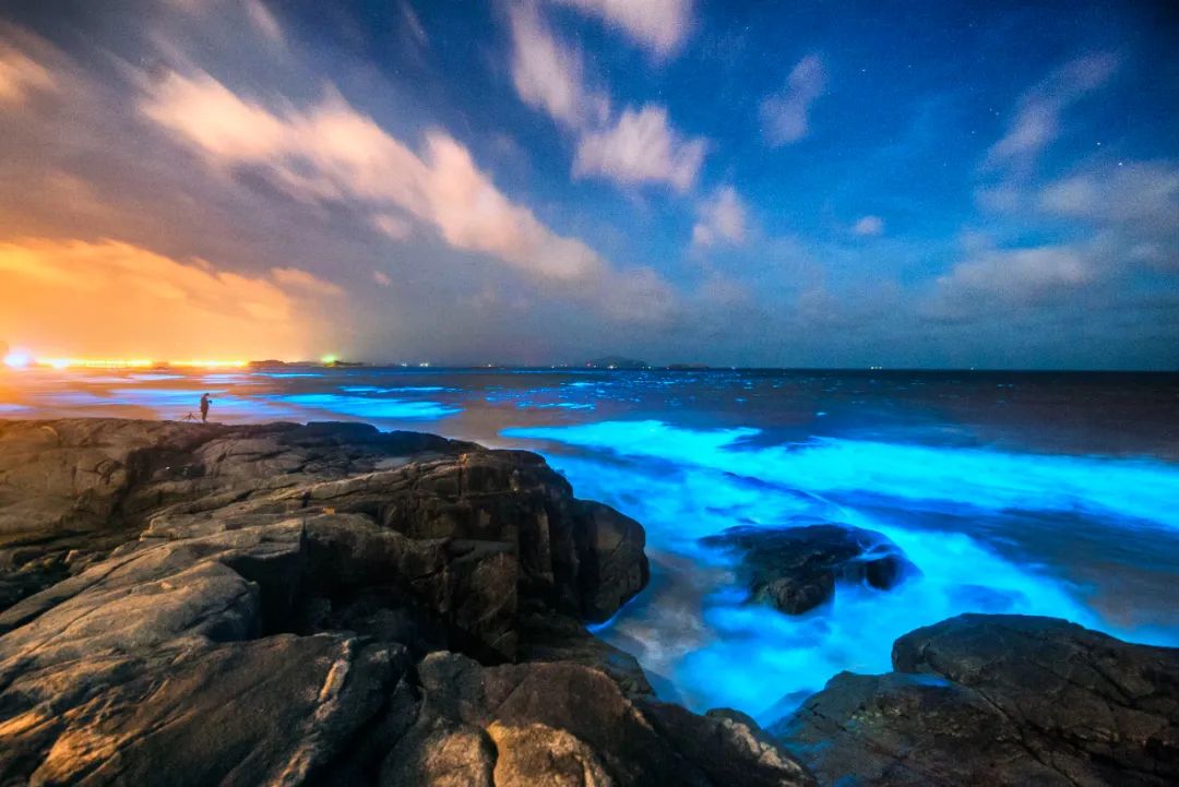 在福建平潭拍摄的“蓝眼泪”。新华社发(念望舒 摄)
