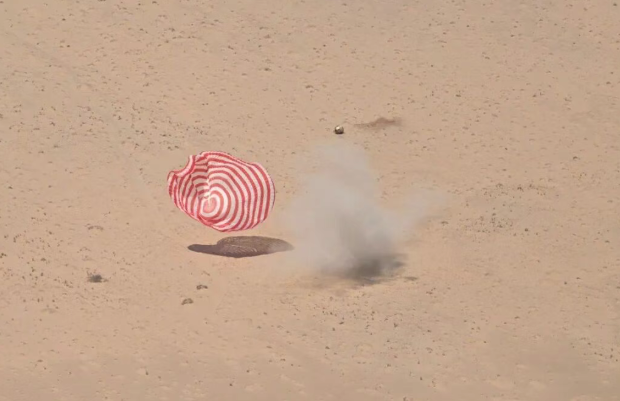 4月30日13时08分,神舟十九号载人飞船返回舱在东风着陆场成功着陆,神舟十九号载人飞行任务取得圆满成功;14时02分,航天员蔡旭哲、宋令东、王浩泽安全顺利出舱,健康状态良好。