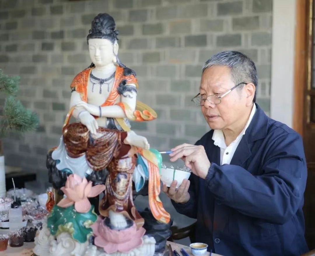袁师永为作品上彩漆 雕漆古称漆雕、剔红、剔犀,专属于福州的雕漆工艺,福犀则是雕漆的一种特殊的漆器制作工艺。在福州,除了闻名遐迩的脱胎漆器外,以福州剔犀雕漆技艺制作的“福犀”,也曾广富盛名。然而在社会发展变迁中,福州剔犀雕漆技艺曾一度面临失传困境。二十世纪九十年代,为了让“福犀”重现往日辉煌,袁师永决意复原福犀技艺。然而创作初期困难重重,袁师永告诉记者,“大漆多了,矿物质少了,就会粘刀,导致刀拉不动;大漆少了,矿物质多了,漆层就很脆,容易断裂。”为此,袁师永花了一年多的时间反复试验,最终确定了最合适的配比。 闯过原料的配比关,接下来是更重要的耐心关——要剔出漆的质感,呈现作品的立体感、纵深感。那么漆就要髹到一定的厚度,多达几十层几百层。但髹漆并不能一气髹完,还要考虑漆层厚度对干湿膨胀情况的影响等。 经过袁师永的不懈努力,福犀最终得以成功复原。他还另辟蹊径,以人物刻画为主,融合福州木雕与寿山石雕的技艺特色,弱化传统福犀的实用性,展现经典传奇的佛教法会场景,从而形成了现代福犀的唯一性。 深浸漆艺之海多年的袁师永,依然孜孜以求,探索大漆的艺术奥秘,守望福州漆艺的文脉。袁师永说,目前他最大的目标就是推进福犀技艺的传承保护,并通过设立工作室、带徒办班、办展等举措,把包括福犀技艺在内的福州漆艺推向全国乃至世界。 (本文图片均由受访者供图) |