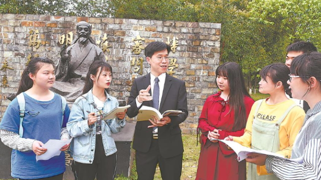 在武夷学院朱子书院,黄柏翰(左三)指导学生课程学习。本报记者 刘深魁 摄 东南网4月18日讯(福建日报记者 刘深魁 李烈)“半亩方塘一鉴开,天光云影共徘徊;问渠那得清如许,为有源头活水来。”在宝岛台湾,一个从小诵读朱熹古诗的少年郎,从未想过有朝一日自己会跨过台湾海峡,到朱子文化的“源头”追梦筑梦圆梦。 跨海“追星” 相传800多年前的朱熹,在建阳麻阳溪畔筑室而居,“琴书五十载”,四方学子不远千里前来求学问道,形成了影响深远的“考亭学派”,朱子学也渐从闽北传遍四方。 10多年前的黄柏翰,跟随朱子的脚步来到武夷山下,同样是求学问道,过去那个用功读书的少年郎,如今已成为武夷学院台湾特聘专家、朱子学研究中心研究员。 从海的那一边,到山的这一边;从求学问道,到传道授业。他的身份几经转换,不变的是追梦的初心。 “今天台湾的主体文化是朱子文化,这个源头就在福建,而后传入台湾。南平是朱子理学萌芽发展、集大成的文化圣地,也是福建省朱子文物遗存最集中的区域,可谓‘县县有朱子、处处有遗存’,每个受朱子文化影响的华夏子孙都会想到源头看看。”说起跟武夷山的结缘,黄柏翰自觉是命中注定的缘分,也是一种思想上的寻根。 2012年,黄柏翰跟随“朱子之路”研习营第一次来到碧水丹山的武夷山。彼时,他的身份是台湾朱子学研究协会秘书长。作为活动组织方,他带着台湾青年学子寻“朱”问迹,一路走过朱熹出生、成长、求学、讲学和终老之地,“那是我和朱子最靠近的一次,当时既震撼又激动”。 东周出孔丘,南宋有朱熹;中国古文化,泰山与武夷。在黄柏翰的记忆里,台湾地区仍是以儒家传统为主的社会,他读中学时学校开有儒家经典课程,朱熹的《四书集注》等古文经典给他留下深刻印象,从此他迷上了朱熹,心中埋下热爱中华传统文化的种子。 一趟闽北之行,让这颗种子发芽了。“以前书里的世界,感觉一下子活过来了。”深受触动的黄柏翰,决定留在南平,深入研究朱子学。那一年,刚好武夷学院因应学科发展的需要,向黄柏翰伸出橄榄枝,双方一拍即合,黄柏翰顺利接下教鞭,入职朱子学研究中心。“用现在时髦的说法,我当时是来‘追星’的。只不过我的偶像,是大儒朱熹。”黄柏翰说。 宝藏老师 “胜日寻芳泗水滨,无边光景一时新。”潭溪的半亩方塘、朱子巷的鹅卵石、兴贤书院的青苔、紫阳楼的灯光、九曲溪的棹歌,过去这里是朱熹讲学、授徒的地方……来闽执教的黄柏翰在武夷山一待就是十载有余,如今这些地方也成了他时常徜徉的所在。 “除了研究朱子学,我还可以跟朱子一样,以一名教师的身份,将优秀的中华文化传给下一代。”武夷学院浓郁的学术氛围、便利的研究条件,给了黄柏翰施展才华的大好舞台。 站上三尺讲台,黄柏翰是学生眼中的宝藏老师。他注重互动式的教学模式,主讲朱子文化的课堂气氛总是很活跃,备受学生欢迎。譬如,讲到朱子的礼学思想,他会带着学生穿上汉服体验,沉浸式感受国风古韵。 黄柏翰的办公室位于古色古香的朱子书院内。2022年,武夷学院朱子书院正式揭牌成立,致力于打造集学术研究、对外交流、决策咨询、人才培养和文化展示为一体的朱子文化综合平台。“大陆很重视我们台湾老师的研究工作,很多政策也与此相关,像朱子文化、民族历史等领域的研究,都鼓励我们申报课题。” 在广阔舞台大显身手,黄柏翰的视野更加开阔了,学术研究也有了更多源头活水。“在台湾只能看到一个小角落,在大陆你可以看到整个世界。”黄柏翰告诉记者,武夷学院不仅是朱子学研究重镇,还有中国社科院与福建共同设立的宋明理学研究中心,这里可学可用的资料非常丰富,可以汲取最前沿的学术养分,而且与国际交流密切。 10年的潜心研究,黄柏翰收获颇丰。近年来,他主持或参与国家级、省级课题10余项,发表学术论文20多篇。2020年,他主持的课题《战后台湾儒学研究(1945—2000)》获得国家社科基金立项。 “以儒学为代表的中华传统文化是两岸历史文化的根基,也是两岸同胞血脉相连的纽带。”黄柏翰说,他想通过这一研究,系统性地建构儒学在台湾的发展和演化过程,有助于增进台湾同胞的文化认同。 第二故乡 一盏岩茶入口,茶香四溢。在茶的故乡生活,黄柏翰早已练就一身泡茶、品茶的技能,“武夷山早就成了我们的第二故乡,现在太太也来这边教书了”。 采访间隙,黄柏翰兴奋地掏出一本证书,跟记者分享了一个好消息。他与太太已经在武夷山买房,就等着入住新居了。 近年来,为便利台胞在闽生活,福建各地出台一批政策措施,鼓励台胞在闽购房置业。2021年底,南平市向6位台胞颁发了首批《台企台胞金融信用证书》,黄柏翰就是其中一位。 “以前台胞在大陆贷款买房不容易,有了这份证书,在大陆买房方便多了,我们直接在银行办了按揭贷款。”圆了安居梦的黄柏翰感谢大陆惠台利民政策的支持。 由于痴迷朱子文化,前年黄柏翰还被聘为南平文化传播专员,以台胞的视角向海内外讲述朱子故事,传播中华文化。 不止于此。如何让更多年轻人了解学习朱子文化,也是黄柏翰一直关注的方向。为了让朱子文化“活”起来,他协助推动朱子敬师礼这一古礼在学校重现,朱子文化节成为富有特色的校园文化品牌。在此基础上,武夷学院的“朱子文化进校园”项目获得国家级优秀传统文