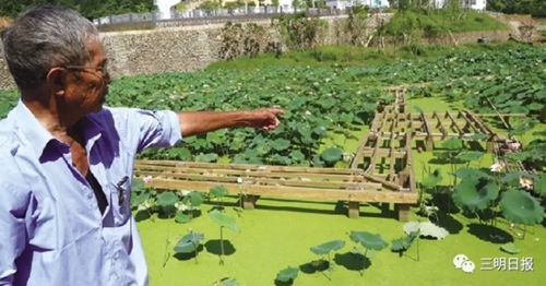 时任城关大队民兵营长的徐子林老人,手指的正是当年红军帮助群众清理的西门莲塘。 岁月如白驹过隙。1959年9月,一个消息在建宁县不胫而走--红军烈士肖瑞云弟弟、苏区时期少先队员、时任溪口公社管委会副主任的肖瑞兰被选为新中国成立十周年大庆观礼代表,要到北京参加国庆典礼。 一时间,溪口公社城关大队的社员们都欢喜鼓舞。为表达对毛委员的思念和当年红军重修莲塘的感恩之情,大家决定委托肖瑞兰带些建莲给毛委员尝尝。他们纷纷把当年采收的伏莲搬出来,颗粒饱满、色如凝脂的西门莲被一粒粒挑选出来,一共挑了五公斤,打包成盒,连同一封写给毛主席的信,交给肖瑞兰。 去北京的路上,肖瑞兰将这盒载着老区人民沉甸甸情谊的莲子当宝贝一样捧着,生怕有什么闪失,直到将它和信交到中央办公厅同志的手中才长舒一口气。 当年,中央规定,各地赠送的土特产都要原封不动地退回。但这一次,中央办公厅向毛主席汇报说,这是主席当年带领红军战士挖的莲塘种出的莲子,算是劳有所得,建议收下。如此,毛主席才欣然接受,他特意嘱咐中央办公厅打了收条,感谢老区人民的盛意。 典礼结束后,肖瑞兰在大家的期待中回到建宁。第二天,肖瑞兰就被请到县里干部扩大会议上汇报进京情况。会上,他小心翼翼地给大家展示那张具有特殊意义的收条,一字一句地读给大家听,干部们都激动不已。从那以后,这张“厚重”的收条便一直铭记在建宁人民记忆里,成为建莲古老历史文化中重要的遗存。 时光荏苒,沧海桑田。如今的西门莲塘已经成为当地红色教育的重要场所,“红色收条”的故事经过时间的沉淀也愈加历久弥新。(施菲菲 文/图) |