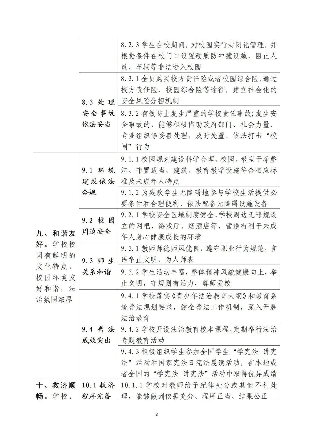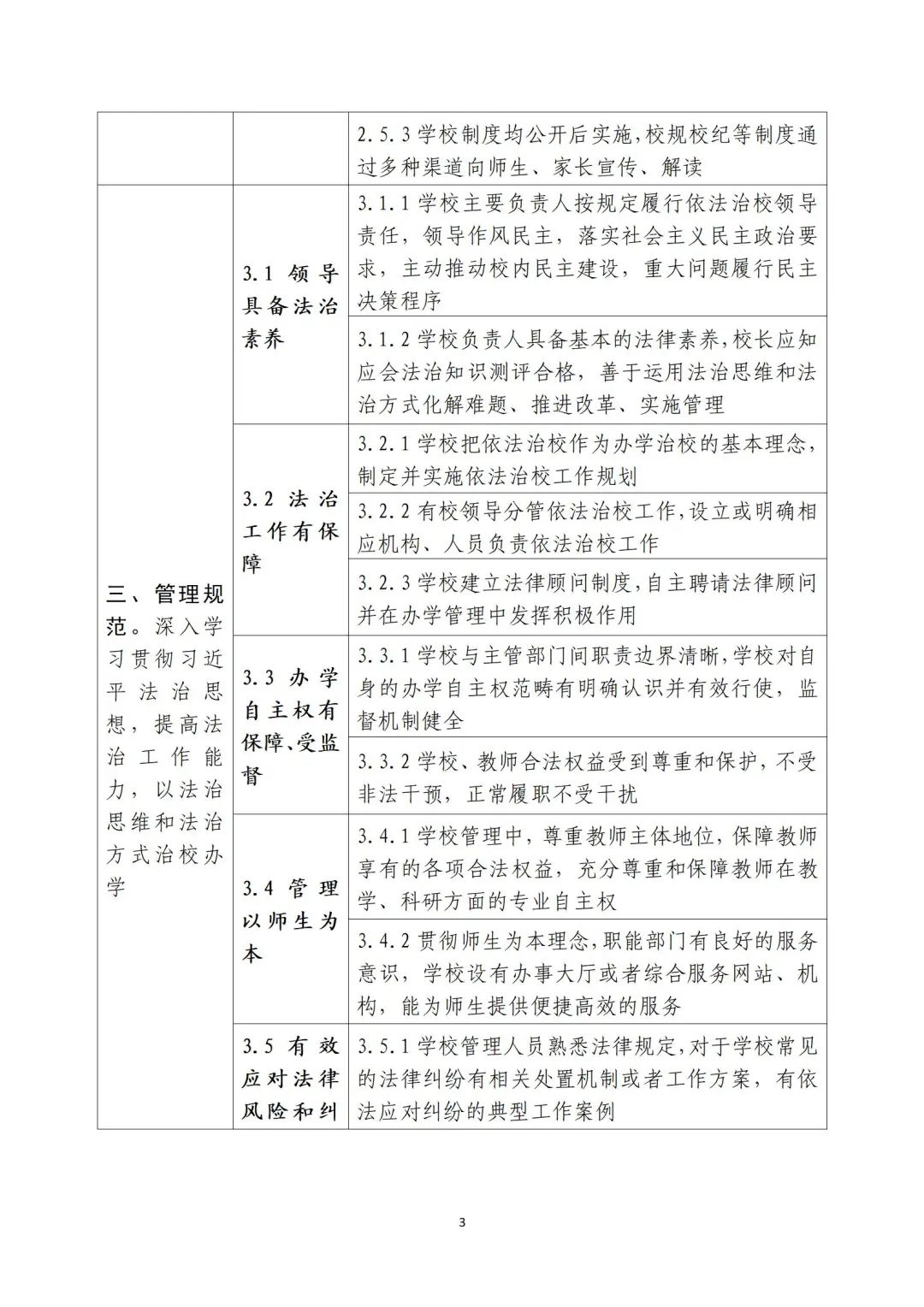 《通知》还提出了哪些要求?一起来看—— 各地要加强组织领导,健全工作机制,着手启动本地区依法治校示范校创建工作。高等学校和中小学校的示范创建,分别按照《高等学校法治工作测评指标》和《指南》实施。开展依法治校示范校创建工作,要坚持改革创新,聚焦实际问题,引导学校运用法治思维和法治方式破解难题、推进改革;要结合学校评价改革,推动形成生动活泼、规范有序的学校育人环境和健全德智体美劳全面培养的教育体系;要深化“放管服”改革,转变管理方式,为学校依法治校创造条件、提供支持,保障学校依法自主办学。示范校创建工作要突出引领性、创新性、实效性,形成具有显著影响的实践经验和制度成果,整体提升学校依法治理水平。 |
