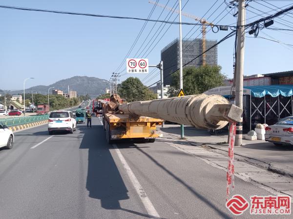 超长“铁柱”违法上路 厦门市交通执法部门紧急处置