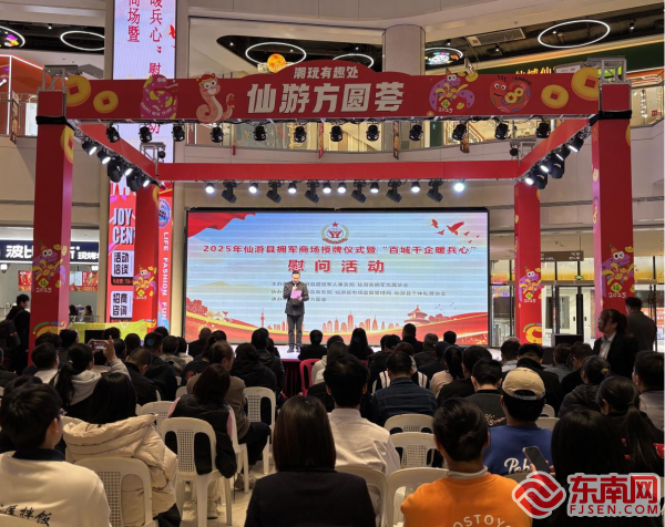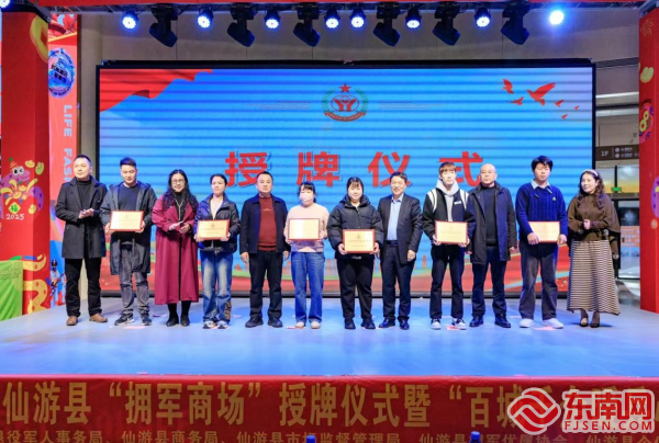 活动现场 东南网1月7日讯(通讯员 黄惠云 文/图)近日,莆田市仙游县“拥军商场”授牌仪式暨“百城千企暖兵心”慰问活动在仙游方圆荟举办。 现场,仙游县退役军人事务局、县商务局、县市场监督管理局、县拥军优属协会、县个体协会相关负责人为仙游方圆荟正式颁发“拥军商场”牌匾,并向12家商户代表集中授牌。