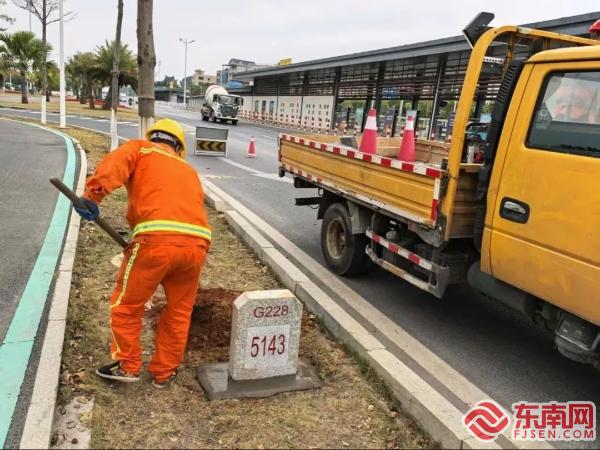 厦门国道228线公里牌、百米桩焕新升级 提升道路通行环境