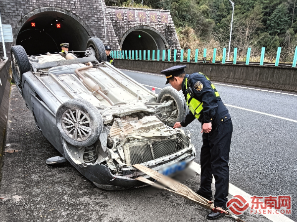 轿车隧道内侧翻!宁德高速执法高效处置