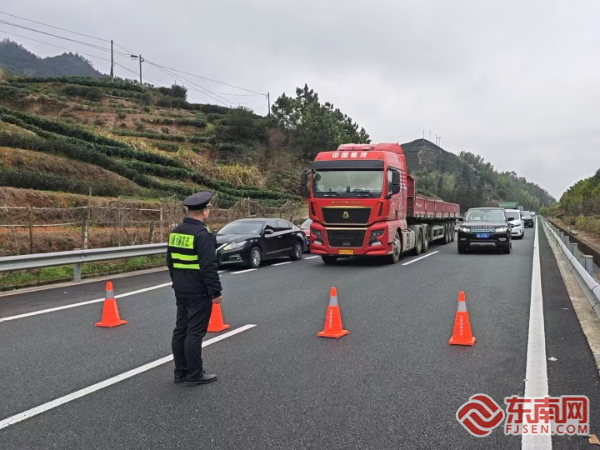 执法人员协助交警进行交通管制。宁德高速执法支队供图 事故车辆侧翻横亘于车道之间,车体严重变形,路面出现燃油渗漏。执法人员迅速联合交警、养护等部门对事故区域实施临时交通管制,在隧道入口及沿线通过可变情报板发布警示信息,引导后方车辆减速避让,并对滞留司乘人员耐心开展现场解说,说明事故情况及安全注意事项,缓解群众焦虑情绪。同时,执法人员协助救援力量对被困人员展开施救,利用反光锥筒、警示灯等设备对现场进行安全布控,防止次生事故发生。救援过程中,执法人员同步对事故造成的路产损失进行详细勘验,固定现场证据,为后续处置提供依据。