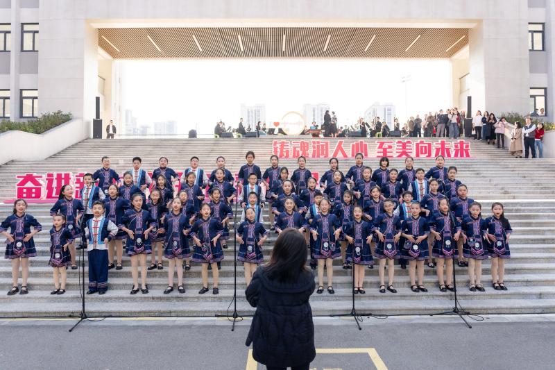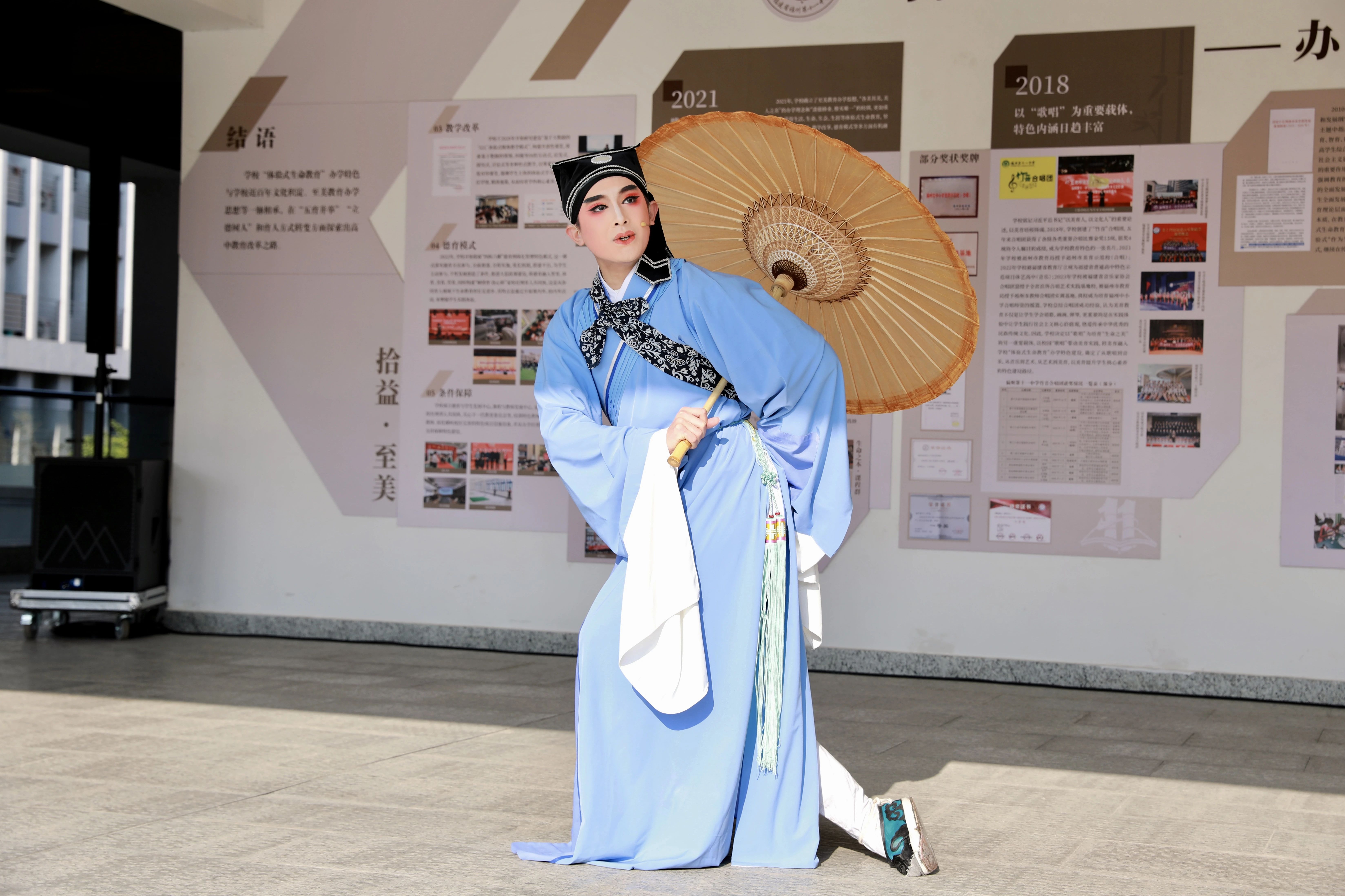 会前,与会人员还现场观摩了全市优秀美育项目展示活动。在校门口广场处,绘画、书法、手工艺等美术作品展以及福清市特殊教育学校蛋雕工作坊、福州市麦顶小学漆彩麦园漆艺工作坊、福州闽侯县职业中专学校 扎染工作坊等吸引了众多目光;广场阶梯处,福清市滨江小学的大合唱和福州八中的器乐表演赢得了阵阵掌声;二层平台处,福州市艺术学校的闽剧表演更是将现场气氛推向了高潮……
