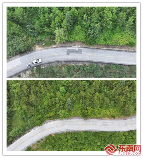 施工前后对比图 东南网6月5日讯(通讯员吴文欣 陈贤昌 )5月底,随着最后一车沥青混合料在G534线坂面镇坂面村路段摊铺完毕,尤溪县普通国省道次差路路面改造项目主体工程宣告全面竣工。