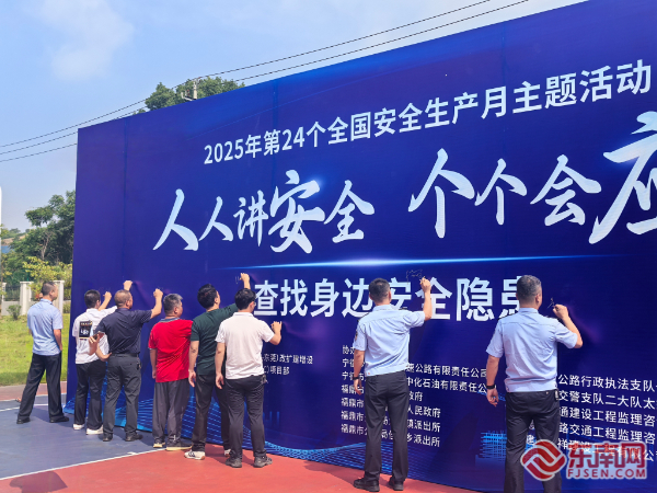 宣教活动。宁德高速执法支队供图 宁德高速执法支队一大队、佳阳乡政府、沙埕湾公司等十三家单位,开展形式多样的安全生产宣教活动。现场模拟事故场景,救援人员熟练地用担架转移“伤员”,动作规范且迅速,展现出了专业的应急救援能力。活动还设置了安全生产月主题展板签名环节,员工及群众纷纷在展板上郑重签下自己的名字。这一笔一划,不仅是个人对安全生产的承诺,更是大家携手共筑安全防线的决心体现。