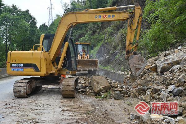 7月21日晚,省道308线沙县区长红村路段发生山体崩塌,石块影响道路安全通行。 东南网7月23日讯(通讯员 徐紫莹)近日,短时强降雨突袭沙县区,落石、倒伏树木占据多处路面,影响通行安全。三明市公路事业发展中心沙县分中心全体职工昼夜不息,在暴雨与险情中展开与时间的竞速赛。 7月21日傍晚,一阵强降雨刚刚过去,高砂公路站职工在国道205线龙江村路段发现倒伏树木,占据半幅路面。他们披上雨衣、提起油锯便冲入雨中,不顾大风掀起的雨衣和沾满锯末的脸颊。经过半小时疾速清理,他们将道路安全隐患清除。 当晚9时许,在省道308线长红村路段,随着一声巨响——约300m3土石轰然倾泻,石块拦住了过往群众的通行道路,现场车队排起长龙。大洛公路站站长林新清到达现场后,安排专人观察边坡稳定情况,并组织人员对现场进行安全布控。铲车就位后立即开展清理落石工作,在各方配合下,近两小时紧张作业后,该路段恢复通行状态。