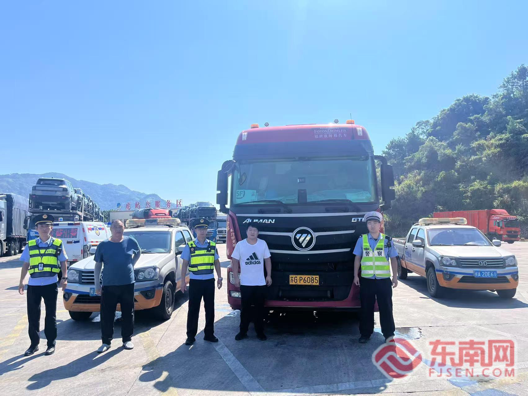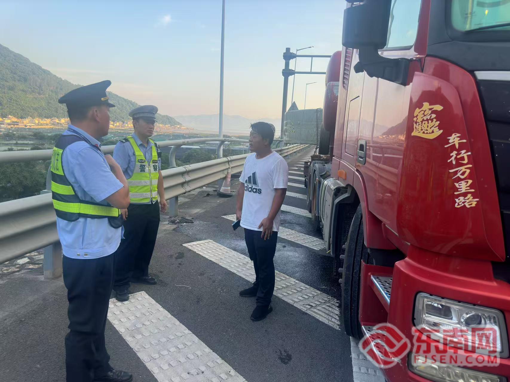 经多方沟通协调,确定了应急处置方案:在确保安全的前提下,由高速执法与交警部门共同护送这辆“巨无霸”前往前方虎屿岛服务区安全停靠。18时20分,现场勘验完毕。执法人员与交警协作,协调施工方临时撤控,为这辆超宽超重的特殊车辆腾出安全通道,并引导、协同护送其驶离受阻路段。 18时50分,在执法与交警车辆的全程护送下,这辆承载着重达76吨铸件的“巨无霸”安全抵达虎屿岛服务区。执法人员随即告知司机陈某,其造成的路产损坏可通过保险直赔渠道理赔,无需个人先行垫付费用。得知这一便民举措,陈某先前紧绷的神情终于放松下来,他再三向执法人员表达了诚挚的感谢,高度赞扬了此次人性化执法和高效便民的处置。 为确保该车后续行程安全顺畅,7月31日上午9时,霞浦中队执法人员再次前往虎屿岛服务区,协调并引导护送这辆超宽超重大件运输车辆重新驶入高速,踏上后续旅程。 |