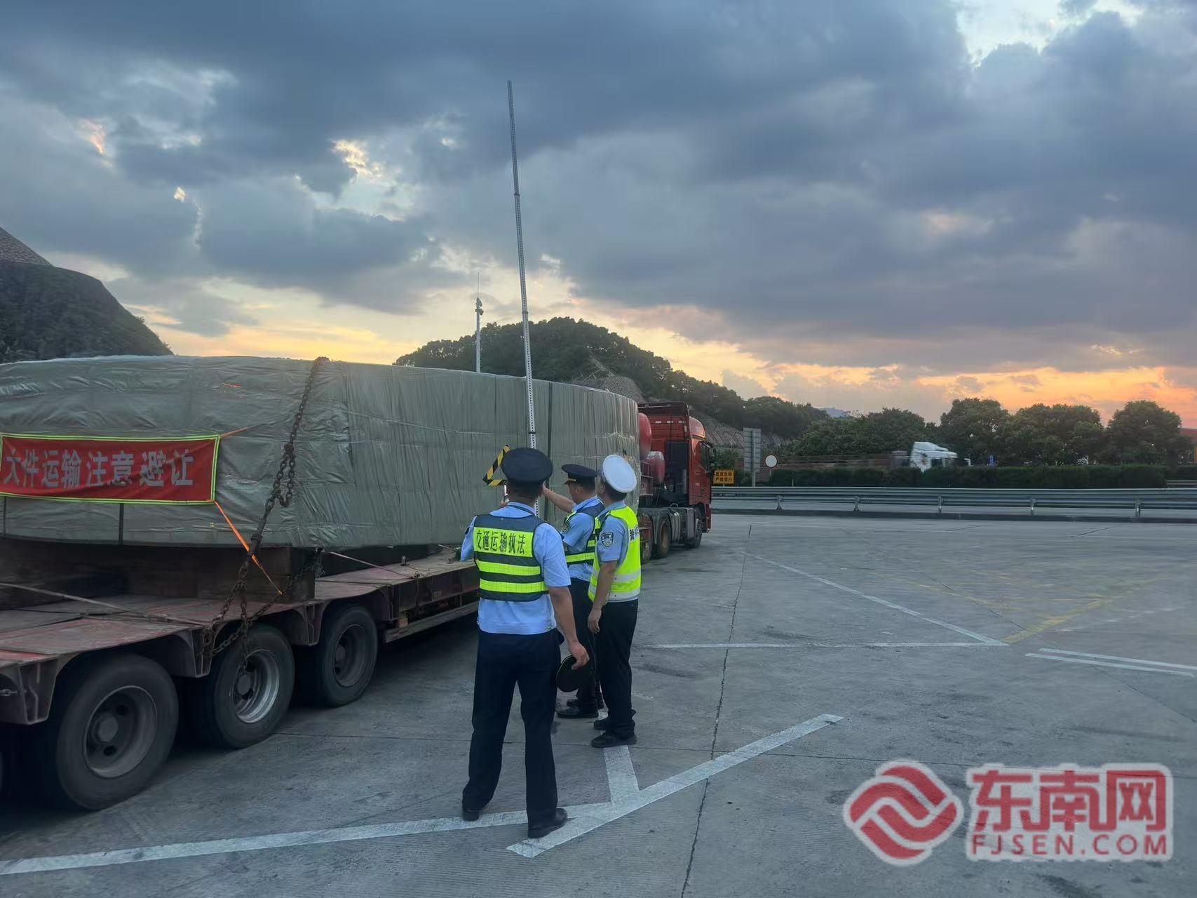 东南网8月1日讯(通讯员 李赞继)7月30日17时30分,宁德高速执法支队霞浦中队接警:沈海高速公路A1915K+300M处(赤岭隧道施工路段附近),一辆装载着庞然巨物——宽度达6.2米、重达76吨钢铁铸件的超限大件运输车辆,因前方隧道施工无法通行,被迫滞留,请求援助。